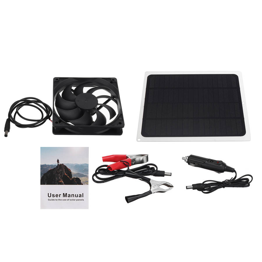 Package included: 1 x Solar Panel 1 x Alligator Clip 1 x CIG Lighter 1 x Exhaust Fan