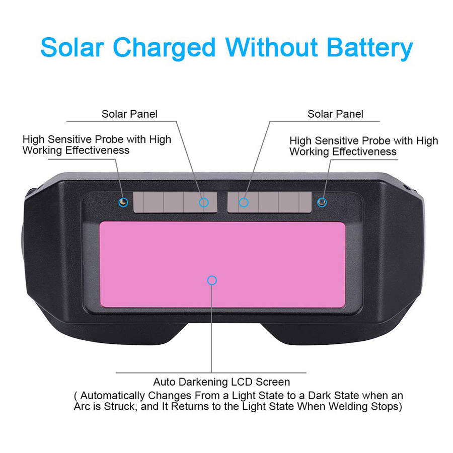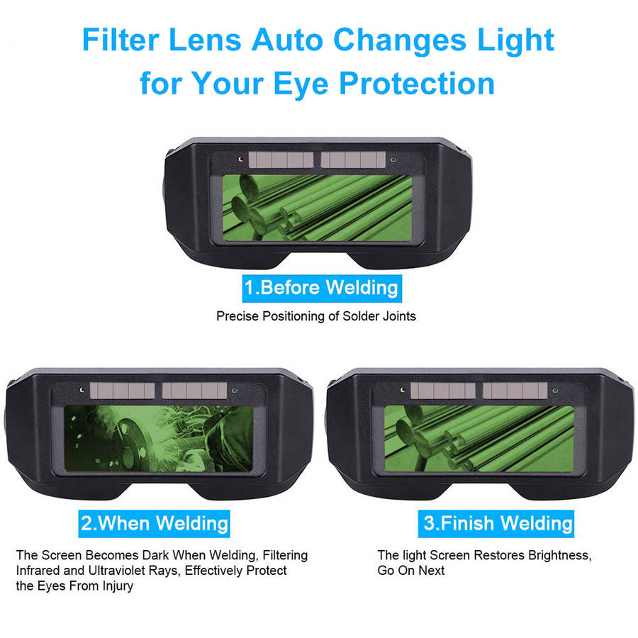 1. This solar auto darkening welding goggle features anti-ultraviolet, infrared radiation, anti-glare.