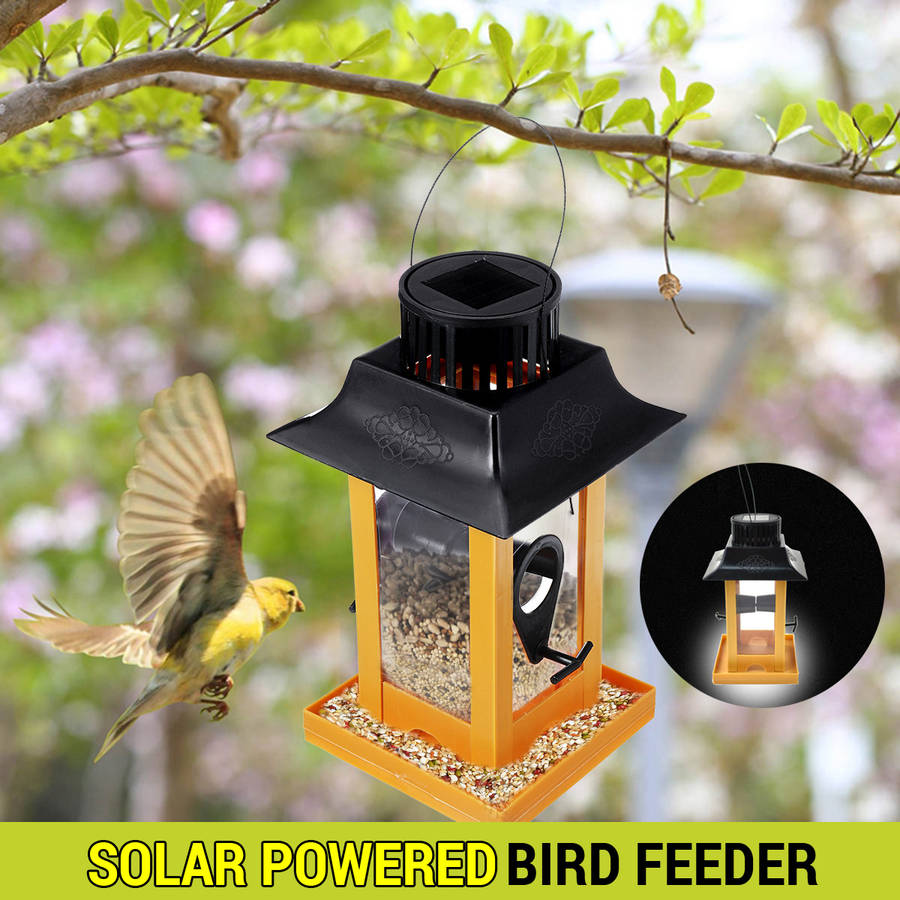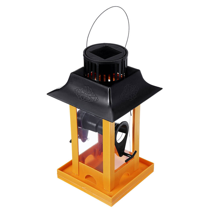 Technical Specifications: Color: As shown Material: PVC Plastic Size: 12*12*23cm / 4.7*4.7*9 Features and Benefits: a Make your backyard or garden the new hotspot for every bird in town,youall easily attract both clinging and perching birds. a Made of outdoor-safe plastic. a Includes rechargeable battery powered by solar panel a Automatic timer illuminates at night; comes ready to hang