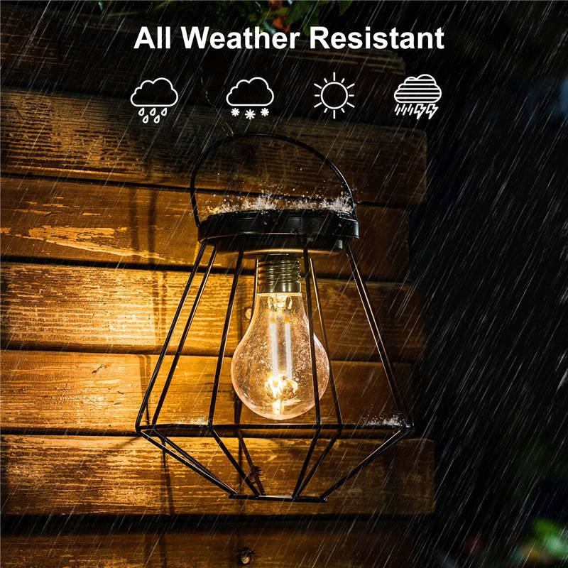 All Weather Resistant- IP65, waterproof and dust-proof for long-term outdoor environment. Black baking finish on iron lantern prevent the lamp from rust.