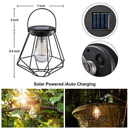 Graceful & Vintage Design- Vintage lantern body, concise pattern design with in-built warm white LED filament bulb increase a warming glow and decorate your gorgeous life with more romantic ambiance and show your exquisite taste to your visitors.