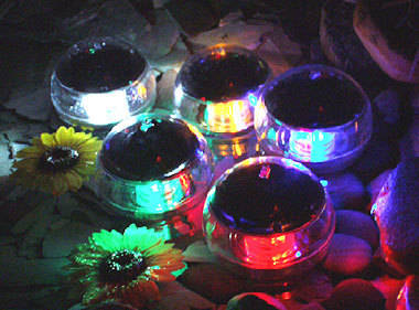 Economically priced solar light adds coloured elegance to any patio or water feature. Weather- and temperature-resistant plastic is watertight and buoyant with two bright internal LED lights. Perfect 4" diameter size hides a discreet solar panel to charge the battery during the day and illuminate the sphere through the night. Hidden, push-button "ON/OFF" switch on base of sphere. Versatile design can also be suspended beneath a stand or attached to a garden stake (stand and stake not included). Multi-colour Solar Light available in 4" and larger 6" diameter spheres. Automatically changes colour for enchanting night time light effects. Multi-colour feature transitions from red, yellow, green, and blue light for enhanced lighting effects. |