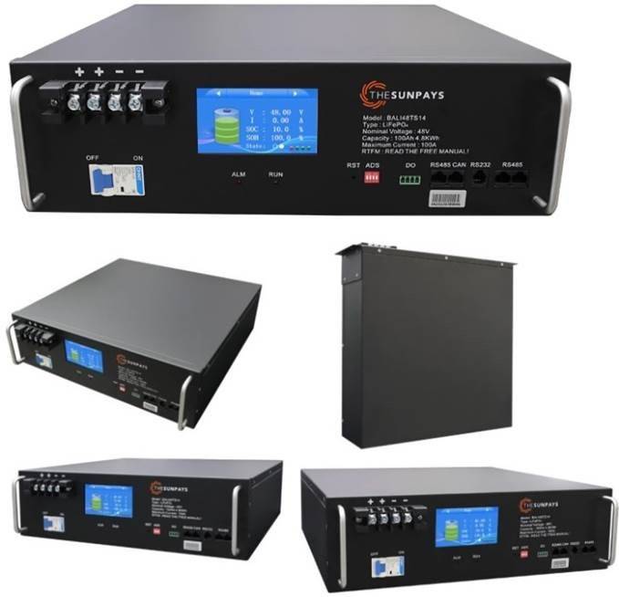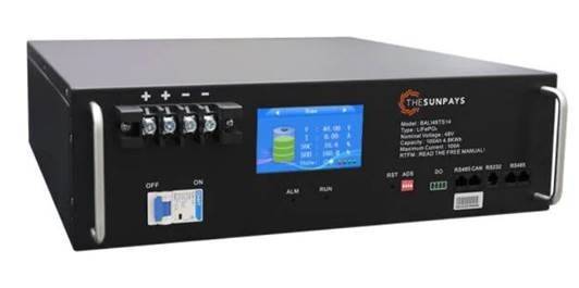 Solarix SunPays 48V 100Ah LiFePo4 Single Battery Module- Touch Screen Control Panel, Intelligent Battery Management System, Normal Voltage 48V, Rated Capacity Typical 105Ah, Total Usable 4.8 kWh, Mean Operation 48.0 to 49.5 V, Charging voltage 51.6 V, Standard Continuous Charge Current 20A to 40A, Maximum Continuous Discharge Current 100A, 19 inch Rack Mount Chassis, Design To Work Perfectly Hybrid Invertors Up To 7KVA 48V, Retail Box , 1 year Limited Warranty