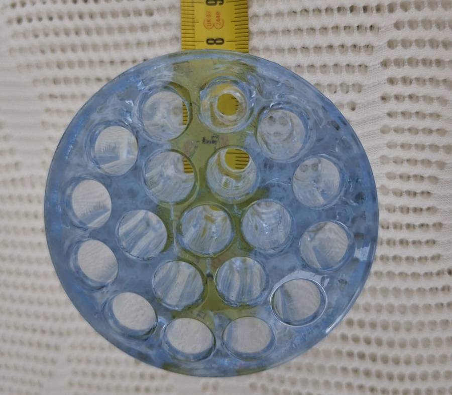 Sold Bobshop 17 Oct 2025 Flower frog pale blue glass - for flower arrangement. 7.5 cm dia