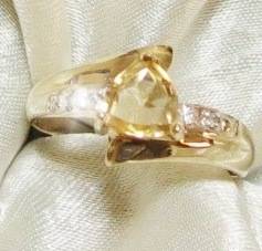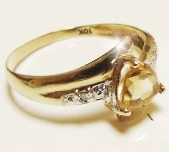 SOLID 10CT GOLD CITRINE AND DIAMOND RING SIZE 6
