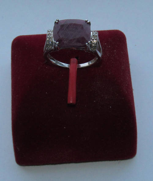 This is a glamorous 10kt gold genuine ruby and white diamond ring. This lovely ring is composed of a genuine 10x12 mm square cut faceted ruby gemstone in its center and is surrounded with (14) 1.3 mm round cut genuine white diamonds on both sides. The total gemstone weight is approx. 4.97 cts. The ring is beautifully crafted with only the finest shiny polish that enlightens the entire setting and makes it magnificent. A 10K stamp is engraved inside the ring for gold authenticity. The ring is size 6.75, and can easily be resized by your local jeweler. The total gold weight is about 2.5 grams. This is the perfect gift this holiday season.