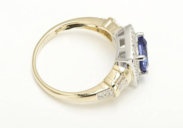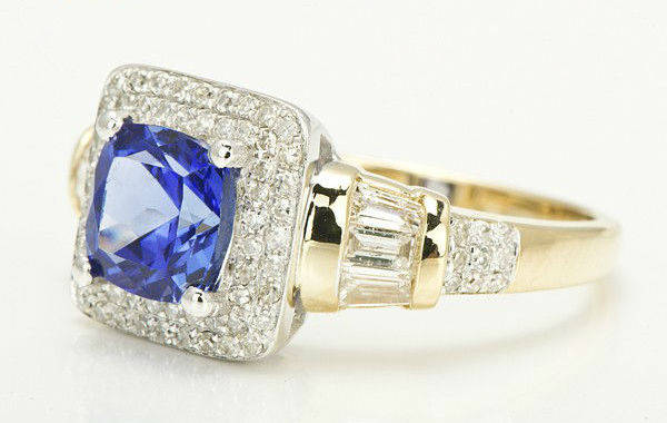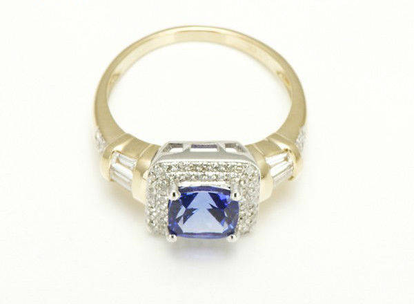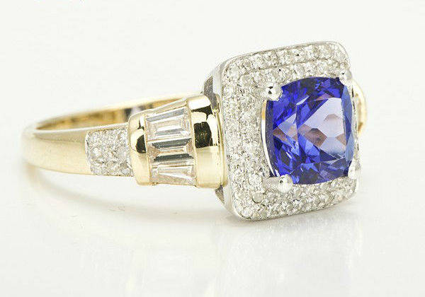 Solid 14CT 2.66TCW Gold Cushion AAA Blue Tanzanite Natural Diamond Ring