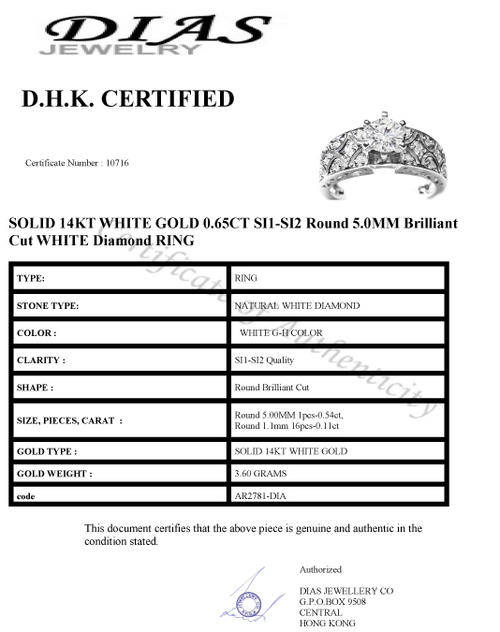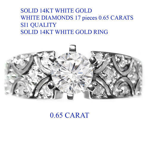 SOLID 14KT WHITE GOLD 0.65CT SI1-SI2 Round 5.0MM Brilliant Cut WHITE Diamond RING