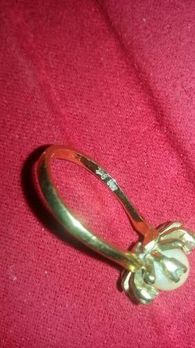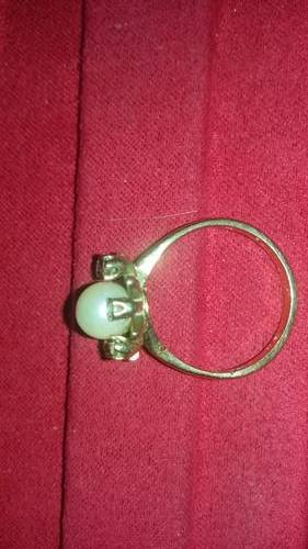 Solid 9 ct yellow gold with pearl and 6 cubics ring