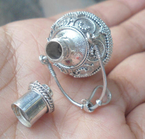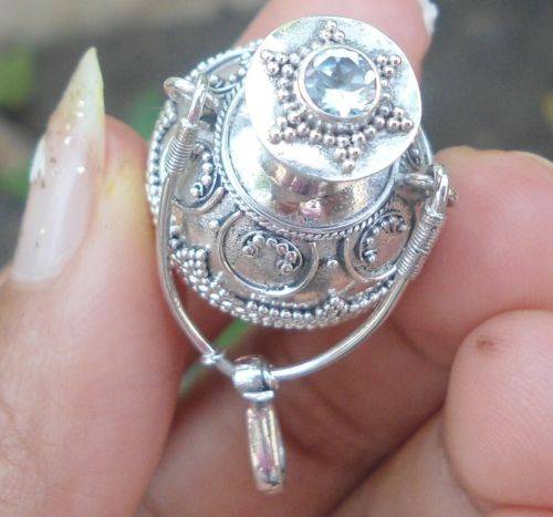 SOLID 925 Sterling Silver-Balinese Perfume Locket Pendant W Blue Topaz