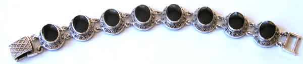 Sterling silver bracelet fashioned of marcasite stones all around the black 8 pieces of approx . 13.00 x 8.00 mm .
