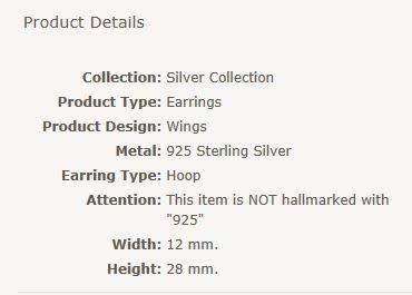 SOLID 925 Sterling Silver Wings Hoop Earrings SOLID 925 Sterling Silver Wings Hoop Earrings