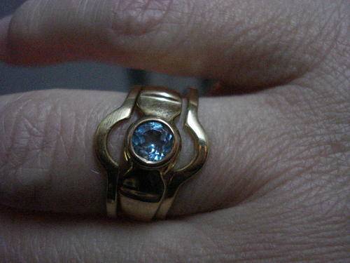 VERY NICE 3 PEACE SOLID YELLOW GOLD WEDDING SETT WITH A AQUAMARINE GEMSTONE WITH APROX SIZE OFF .65 ct GEMSTONE THAT IS OREGINAL. Don't ask me the ring size or weight of gold as I do not have the equipment to add that. It is solid gold so it can be re-sized.