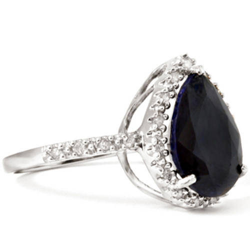 SOLID 9K WHITE GOLD TEAR CUT GENUINE BLACK SAPPHIRE & DIAMOND RING