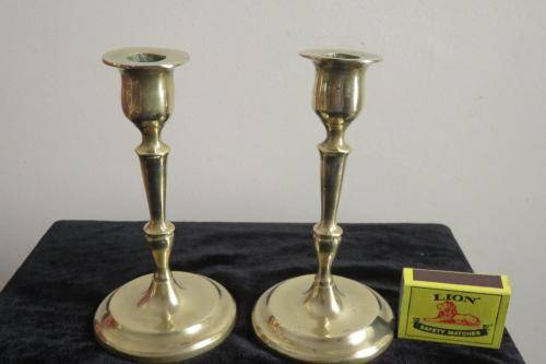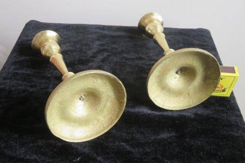 Solid brass candle holders. They can be dismantled into two pieces. 15 cm high
