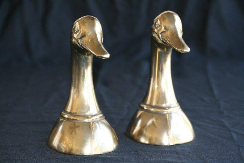 THIS PAIR OF BRASS DUCK BOOK ENDS / ORNAMENTS ARE TOTALLY COOL AND WILL COMPLIMENT ANY BOOK SHELVE OR SHOW CASE!!! THEY ARE APPROXIMATELY 165mm HIGH AND REALLY LOOK FANTASTIC!!! 1 BID = 2DUCKS - BARGAIN!!! POSTAGE AND PACKAGING WILL BE R50.00 COUNTER TO COUNTER OR PLEASE ARRANGE TO COLLECT IN BOKSBURG. PLEASE VIEW THE PICS VERY CAREFULLY FOR MORE DETAIL AND CONDITION.