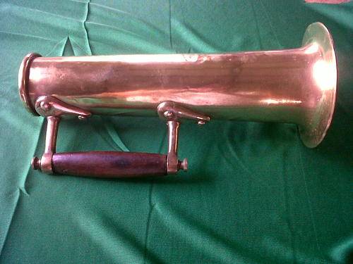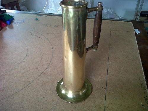 SOLID BRASS TANKARD WITH WOODEN HANDLE