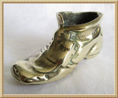 A lovely solid brass shoe, marked " England " to base, in good condition, 7cm length, 3cm width, 3.5cm height, 166g weight.