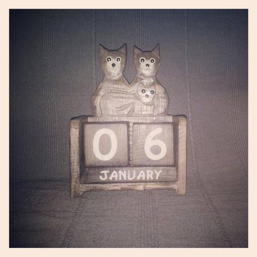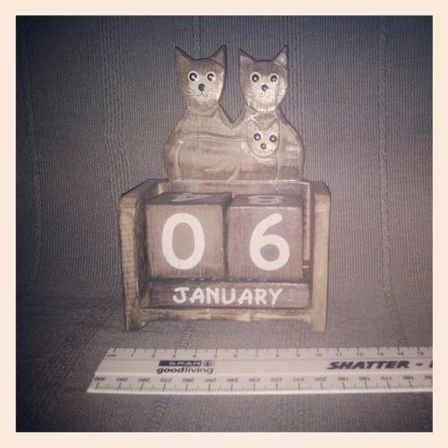 Solid hand painted wooden cat calendar. Perfect desk accessory for your office desk.