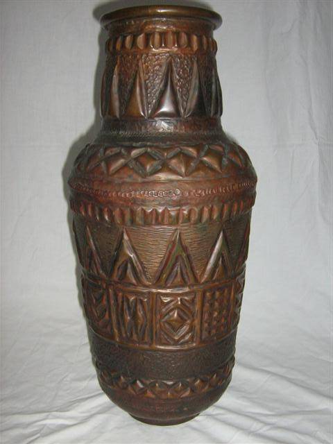THE VASE IS HAND MADE AND THE EXPERTESE OF THE COPPER-SMITH IS OBVIOUSE TO ALL..THE VASE WAS PRESENTED AS A RETIREMENT PRESENT TO A LONG STANDING EMPLOYEE OF VECOR AND THE APPROPRIATE INSCRIPTION IS ON THE BASE