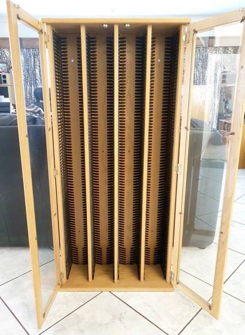 A superb CD rack that can take 300 single CD's and 16 double CD's! The CD rack measures 139cm x 65cm x 24cm. Offered at a low price, bid now!