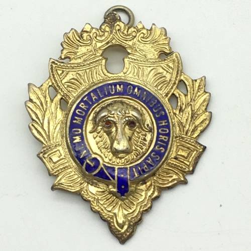 This heavy, early, sterling silver and blue enamel 'Royal Antediluvian Order of Buffalos' (RAOB) is in excellent condition with a lovely gilding. It is stamped with English silver hallmarks dating this piece to 1968 and was made in Birmingham by silversmiths 'F.C. Parry Ltd' (F.C.P).The wording engraved on the back reads 'PRESENTED TO BRO. M. GATES FOR SERVICES RENDERED AS SECRETARY'. It measures 4,7cm x 3,6cm and weighs 19g.