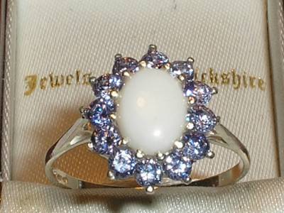 SOLID SILVER TANZANITE & OPAL CLUSTER RING - P -LOVELY