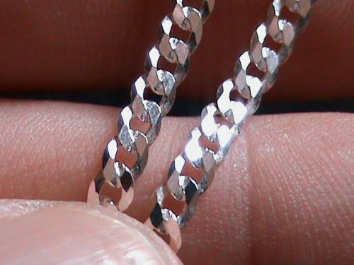55 CM LONG SOLID STERLING SILVER CHAIN.   3 MM WIDE X 0.5 MM THICK.