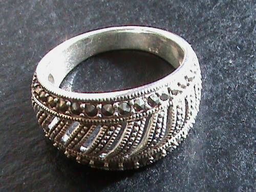 SOLID STERLING SILVER MARCAZITE RING. SIZE R