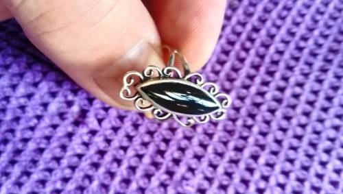 SOLID STERLING SILVER RING. SIZE L 1/2 . CREATED ONYX STONE.
