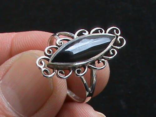 SOLID STERLING SILVER RING.   SIMULATED ONYX STONE