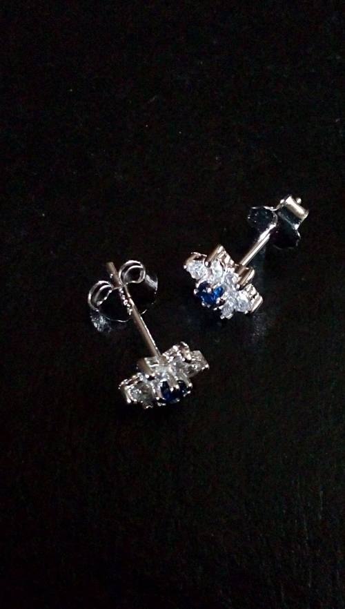 SOLID STERLING SILVER STUDS.   BLUE AND WHITE CZ STONES.   SIZE IS 6.6 MM WIDE.