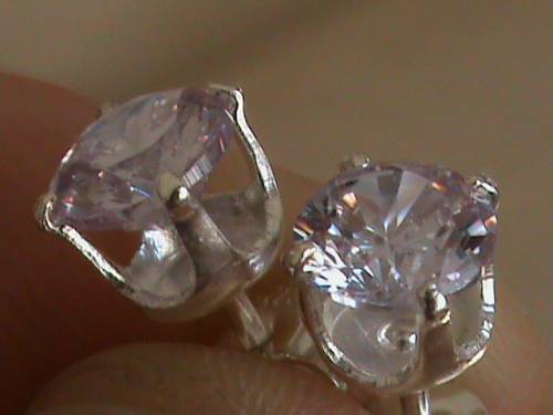 SOLID STERLING SILVER STUDS, LIGHT PURPLE CZ STONES. 6 MM ROUND