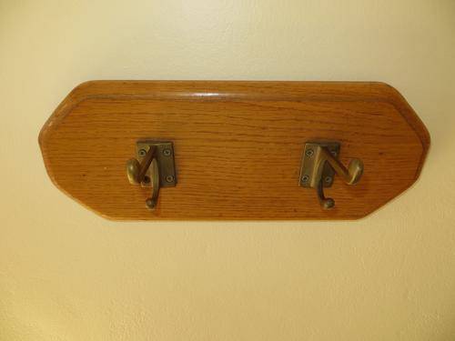 Stunning Solid Oak rustic Country Coat Rack is a perfect décor piece for your entrance hall. It has 2 Brass hooks and measures an overall 42cm Width / 18cm Length, nice and heavy solid oak wood. Please be advised that the cap is not included, only for display purposes.