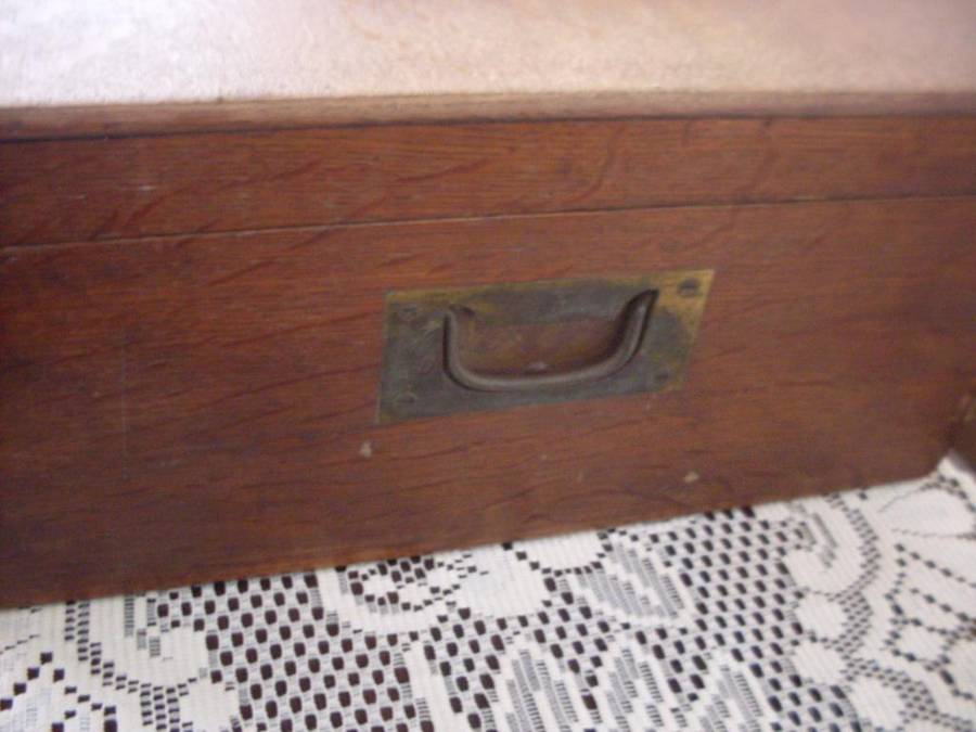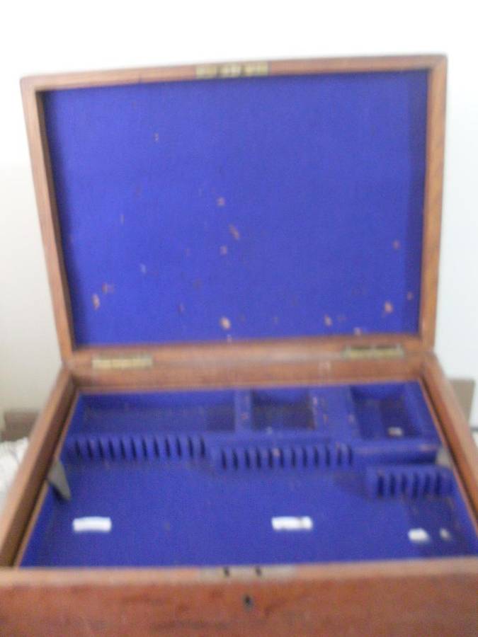SOLID VINTAGE WOODEN EMPTY CANTEEN (DOUBLE LAYER ) SIZE IS 47 CM X 35 CM X 16 CM...NO KEY....BLUE VELT CAN BE REPLACED.... 1 CORNERĀ NOT DAMAGED BUT A BIT TIRED