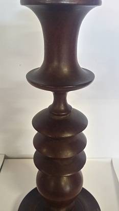 SOLID DARK  WOOD  CANDLE STICK HOLDER   27 CM TALL