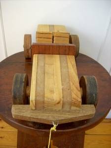 This toy car is made from wood and is very, very solid.  This type of toy is difficult  to find. Your child will have years of fun. L: 360mm.