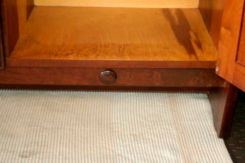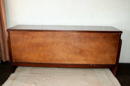 This fantastic and solidly built large vintage Imbuia sideboard/ buffet server with four large drawers (the top drawer is a green lined cutlery drawer) and two cupboards is in awesome condition and measures a decent 184cm long x 49.5cm wide x 81cm high. The side server has amazing weight to it and one can see that it is a quality piece. The solid wood handles give the buffet server an awesome retro look. There is absolute minimal/ normal age and usage related wear and tear. Please view the pics carefully to fully appreciate this awesome buffet side server and to confirm the condition.