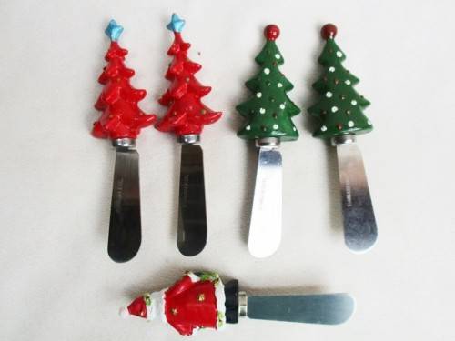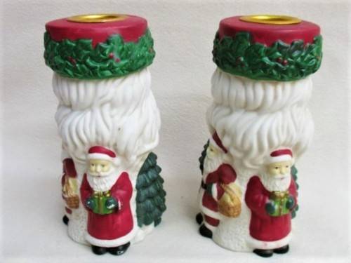 LOT COMPRISING OF TWO BEAUTIFUL CHRISTMAS CANDLESTICKS, A TEALIGHT HOUSE, FIVE FESTIVE PATE KNIVES, A HOLDER CONTAINING SIX FELT COASTERS AND A DECORATIVE SANTA CLAUSE - ALL ITEMS IN VERY GOOD CONDITION AND GREAT TO CREATE A FESTIVE, CHRISTMAS TABLE. REFER IMAGES FOR MEASUREMENTS ETC