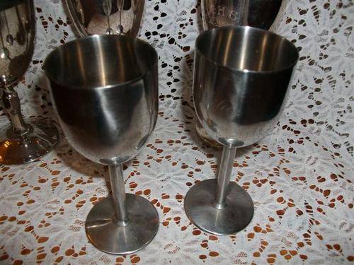 Some sliver plated and two stainless steel goblets for the collector