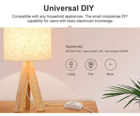 SonoffWiFi controlled switch makes all home appliances smart. As long as the mobile phone has network(2G/3G/4G/WiFi), users can remotelycontrol the appliances by turning them on off from anywhere at any time.Another feature available is to set timers for the appliances, which can include countdown/scheduled/loop timers, and can thus, help usersmaintain an easy life.