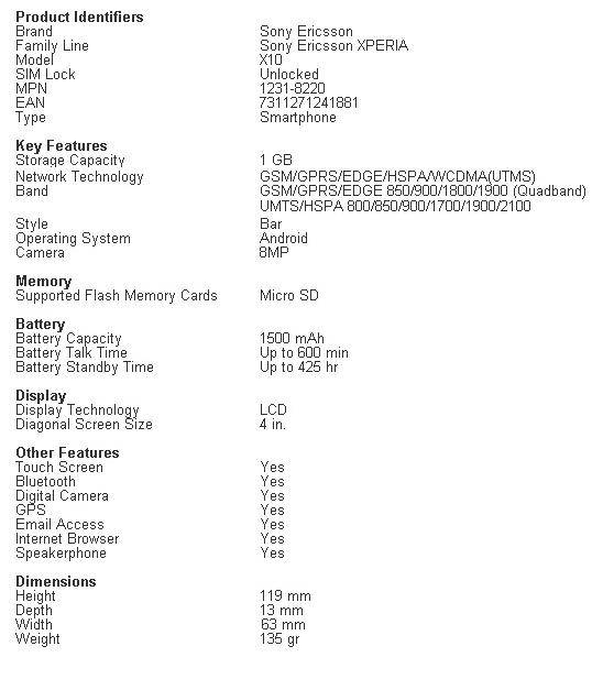 Sony Ericsson XPERIA X10 1GB White (Unlocked) Smartphone +free screen protector