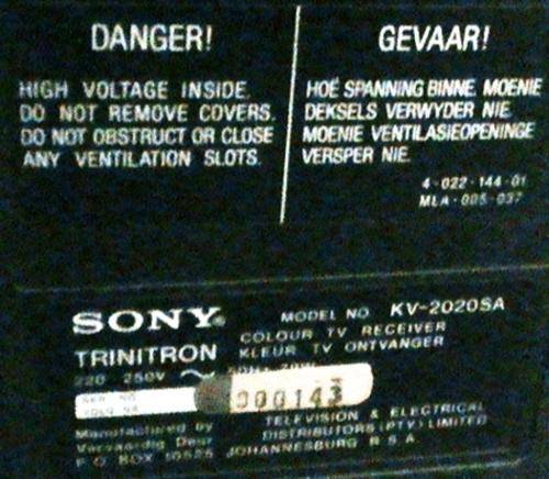 SONY TRINITRON KV-2020SA 50cm Colour TV is being sold FOR SPARES/REPAIR.