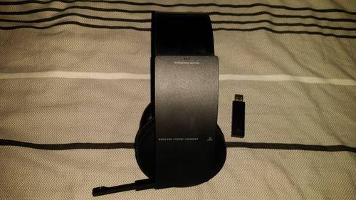 Comes with wireless usb adapter and uses a PS3 controller cable to charge headset
