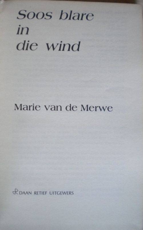 Soos blare in die wind deur Marie van der Merwe. Goeie kondisie.