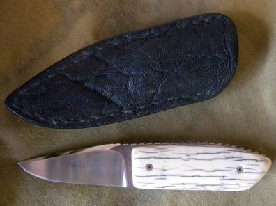 South Afican Knife Makers Guild. Hand made Knife. Fanie la Grange. Giraffe bone. Elephant hide sheat