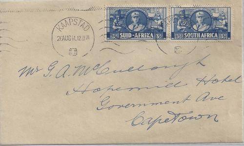 South Africa 1941 Large War 3d pair used commercially on cover, very fine and scarce