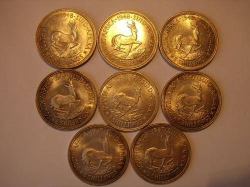 South Africa 1947 & 1948 5/- 80% Silver - 8 UNC Crowns!!! Crazy R1 Start!!!