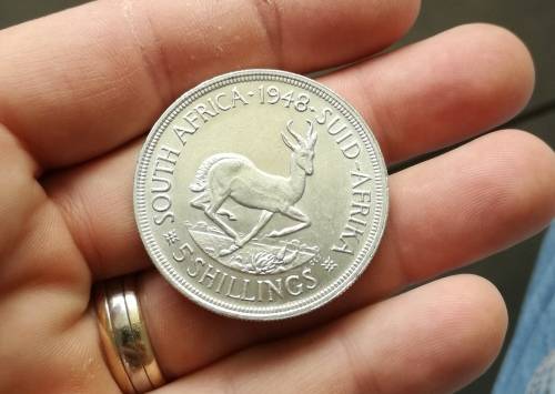 South Africa 1948 silver 5 Shillings. South Africa 1948 silver 5 Shillings.