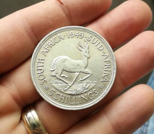 South Africa 1949 Silver 5 Shillings. South Africa 1949 Silver 5 Shillings.